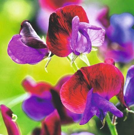 - Species introduced to Britain in 1699 by a monk: Brother Cupani. Bicoloured flowers, maroon upper petals with violet 'wings', making lovely cut flower posies with a beautiful deep scent.