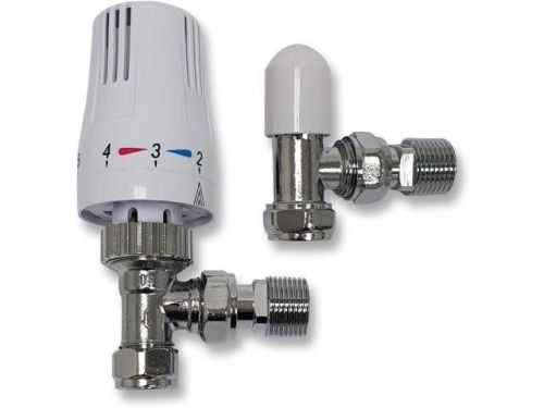 Thermostatic Radiator Valves + Lockshield 1/2" x 15mm White Angled