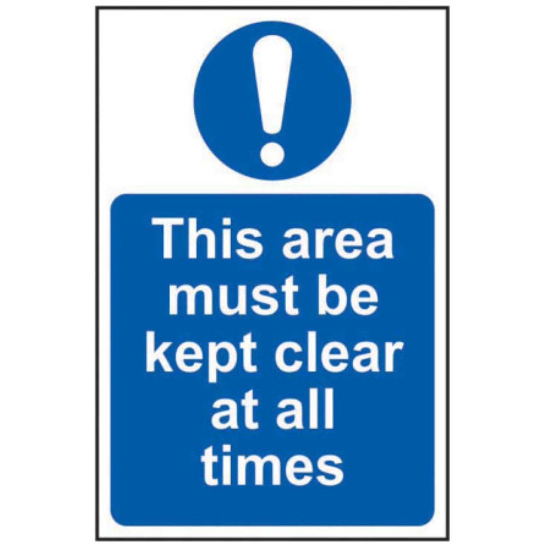 This Area Must Be Kept Clear At All Times Safety Sign – Self-Adhesive Vinyl 200mm x 300mm