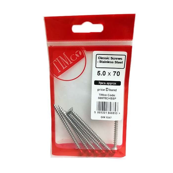 Timco Classic Stainless Steel CSK Chipboard Screws - 5.0 x 70 - Pack Of 7