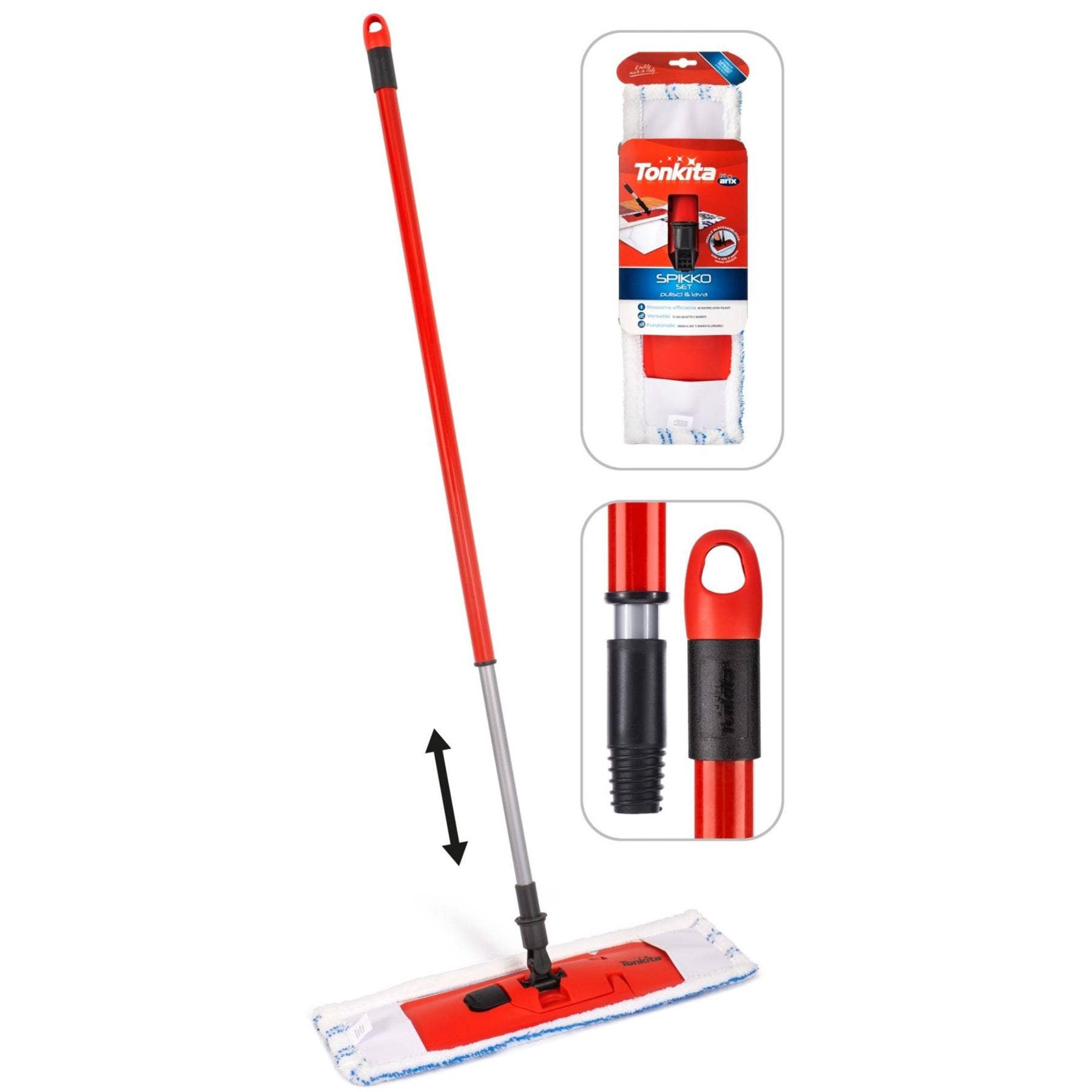 The Tonkita TK780A Spikko Mop is a high-performance floor cleaning solution designed for speed, hygiene, and ease. Built for modern homes and commercial spaces, this mop features an antibacterial microfibre cloth that delivers deep cleaning while reducing the spread of germs. Its telescopic handle allows for adjustable reach and comfortable use, helping you clean efficiently without strain.