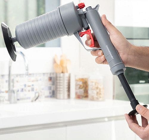 - A compressed air unblocking gun that is highly effective for easily removing accumulated dirt from all types of drains in kitchens, bathrooms, terraces, etc.