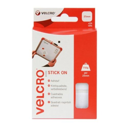 Velcro White 25mm Stick On Squares - Pack Of 24