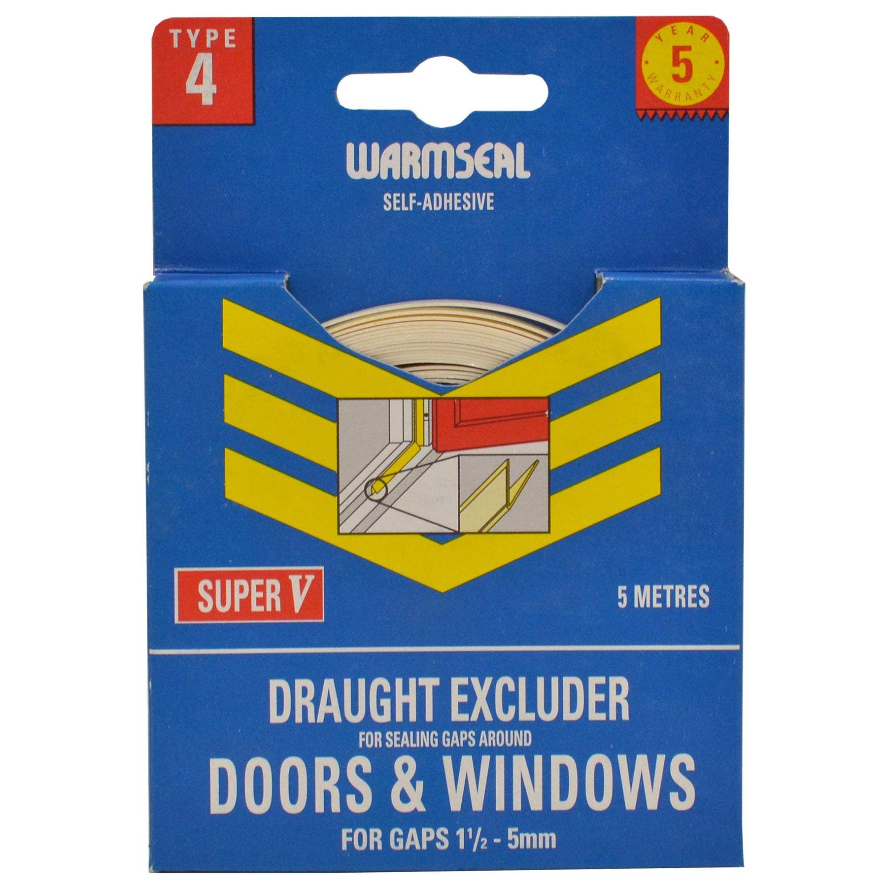Warmseal White Polystyrene ‘V’ Strip Draught Excluder 5m – Energy Saving Seal for Doors and Windows