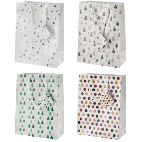 White Christmas Gift Bag 14cm – Assorted Festive Designs with Trees, Stars and Baubles