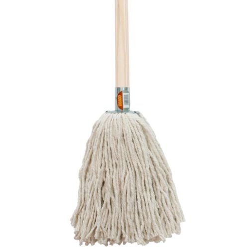 White Cotton Mop Head with Metal Socket & Wooden Handle – No.16