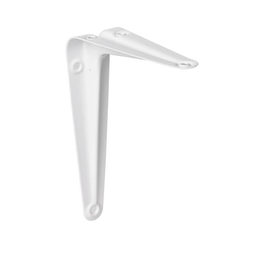 White metal shelf bracket. Pre-drilled mounting holes, 3 either side.