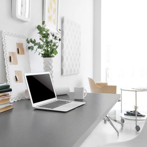 Our Dapple Slate Worktop is as functional as it is stylish. This granite finish worktop is your kitchen surface so it needs to be both beautiful and tough. Scratch, heat & stain resistant. Fully sealed at back edges and base for extra protection. Stylish, durable, hygienic. The Dapple Slate laminate worktop is a perfect surface for working spaces or utility rooms. Home offices, Labs, schools, utility rooms, site offices and more can benefit from our hard wearing 28mm worktop that comes in 2 metre lengths. No matter on which surface you need to accomplish your endeavours, we have the style to match your workspace.