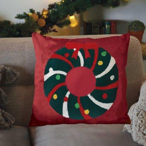 Bring seasonal warmth and festive charm into your home with the Wreath Cushion. Featuring a playful Christmas wreath design, this cushion is the perfect way to add colour and cheer to your holiday décor. Its soft, cosy texture makes it ideal for both comfort and style, while the 45 x 45cm size fits perfectly on sofas, armchairs, or beds. Reusable year after year, this cushion is a delightful way to complete your Christmas decorating scheme and create a welcoming, festive atmosphere.