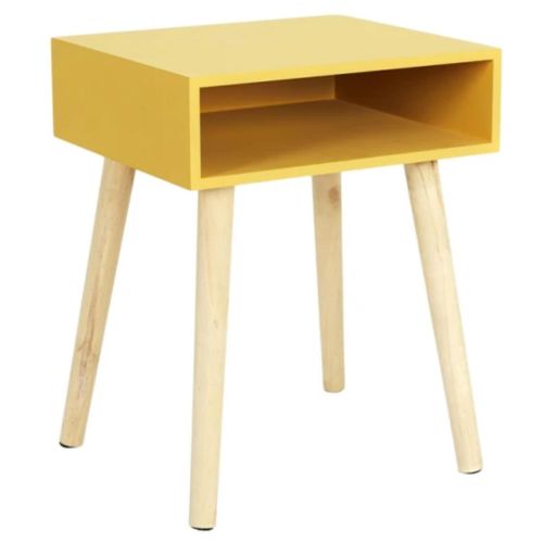 Yellow Scandinavian Bedside Table – Rectangular Pine and MDF Nightstand with Open Storage Niche