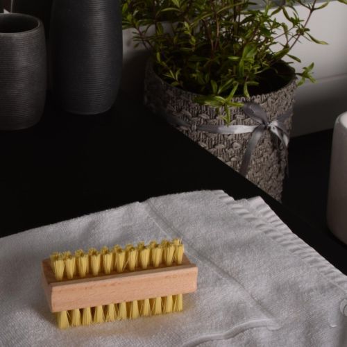 Bristles on both sides provide versatile cleaning for hands and under nails.