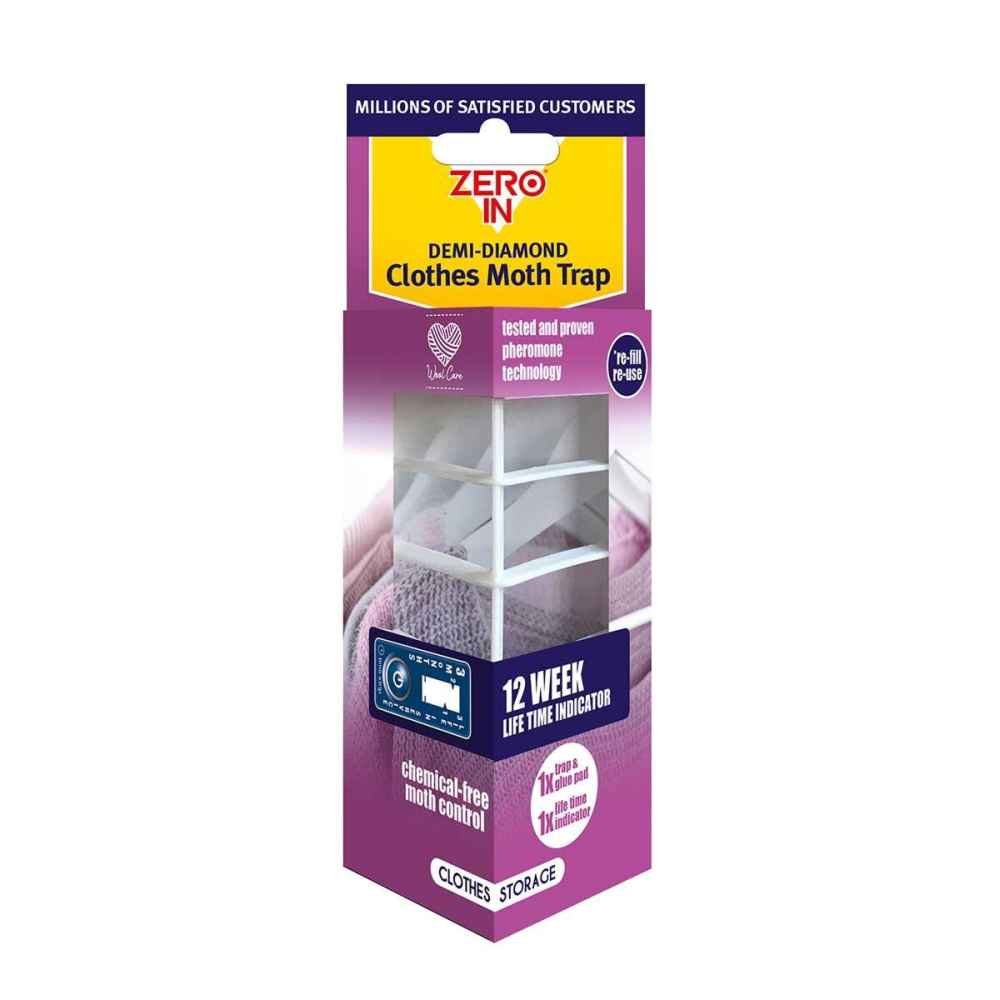- Demi-Diamond Clothes Moth Killer from Zero In uses the latest phermone technologyy to deliver maximum catch rates and protect woolens and natural fibres from moth damage.